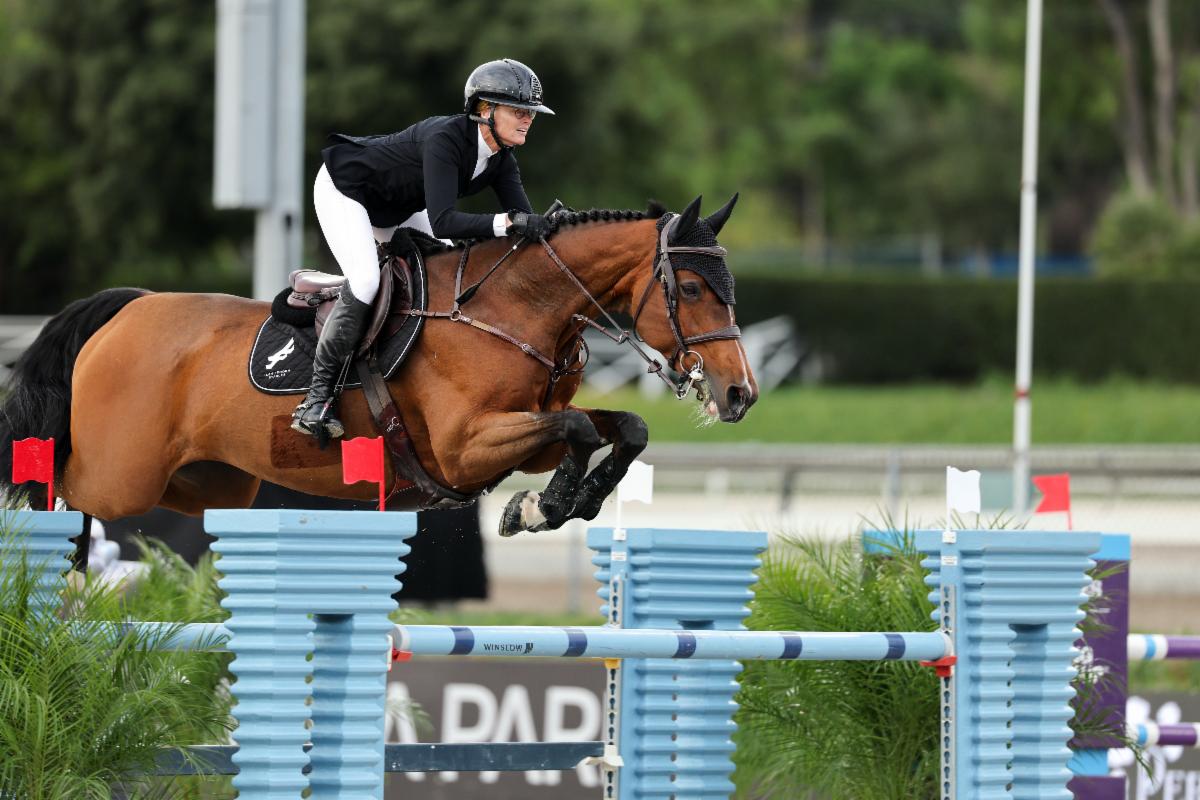 Erynn Ballard (CAN) piloted her Game Ball BG to the top of the podium in the $35,000 CSI5*-W 1.45m Speed Challenge with a blazing time of 58.930